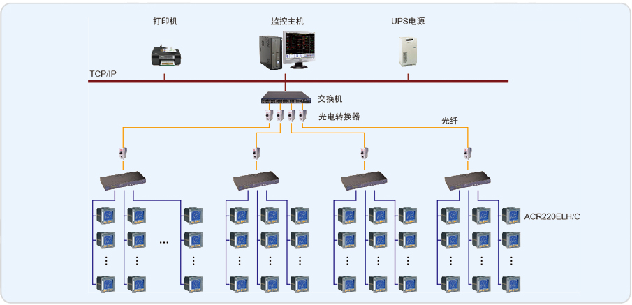 高壓配電間內(nèi)我司智能儀表ACR220EL共28臺,采用1根屏蔽雙絞線連接至通訊管理機,進行數(shù)據(jù)的集中采集;2車間及3車間內(nèi)我司智能儀表ACR220EL共11臺,采用1根屏蔽雙絞線連接至通訊管理機;1車間內(nèi)我司智能儀表ACR220EL共5臺,采用1根屏蔽雙絞線連接至通訊管理機,進行數(shù)據(jù)的集中采集;4車間內(nèi)我司智能儀表ACR220EL共3臺,采用1根屏蔽雙絞線連接至通訊管理機,進行數(shù)據(jù)的集中采集;通訊線纜均采取屏蔽線接地,防止強電信號干擾,末端加裝120歐電阻,增強線路信號,保障了數(shù)據(jù)傳輸?shù)膶崟r性。